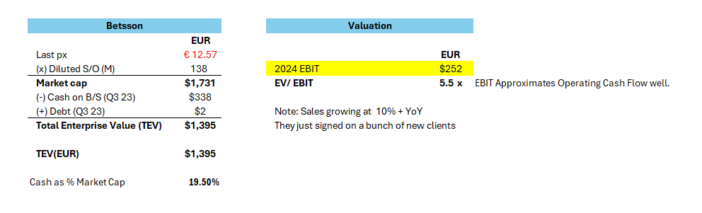 Currently, the company trades at a historically low EV/EBITDA multiple of 4.71x—significantly below peers. This valuation is too low for a company of Betsson’s scale and efficiency. (Below images TEV/EBITDA is calculated incorrectly).