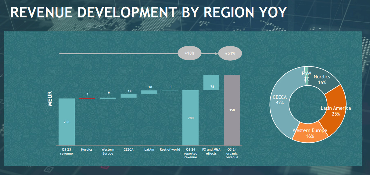 Latam and CEECA (Central & Eastern Europe and Central Asia) remain their top exposures for now. Latam presents a risk in 2025 because Brazil is introducing new regulations for the iGaming industry. Betsson AB has applied for their license.
