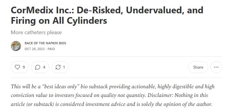 CorMedix’s Q3 looks great for the original thesis!